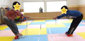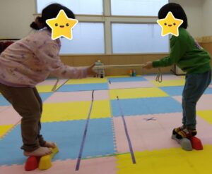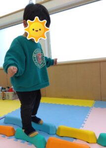 運動遊びでは「跳び箱」や「バランス台」を出して