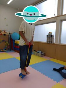 バランス台の上を歩いたり
