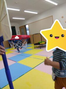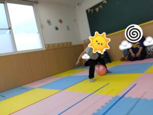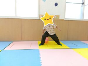また、ボールを行方を見ながら、その先に急いで行き、足を開いてトンネルを作るという一度に複数の事に気をつけながら体を動かす、という活動でした。
