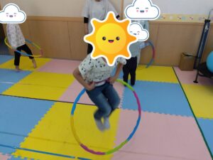フープホッピングを使って体を動かしました😄