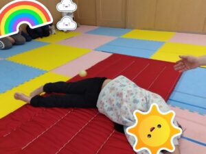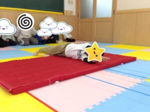 昨日の活動で取り組んだお芋のポーズでコロコロする動き🍠