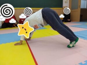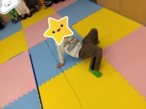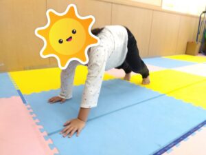 みんなくまの体勢はある程度上手に出来ていたのですが、くもの体勢はなかなかお尻が上がらず支えてもらいながらの子もいましたが、それぞれに苦戦しながら頑張っていました😅
