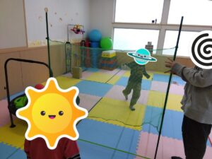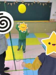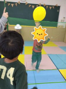 その後は、風船バレー色々な遊具を使って運動遊びをしました😊