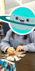 聞き終えたら、ハサミで色画用紙を栗の形に切り抜きます✂