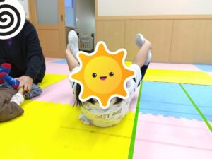今回の活動は、体の柔軟性はもちろんですが、「ゴロゴロ!」の声に反応する瞬発力や集中力、それまでの間同じ体勢で待つ事ができる忍耐力が必要な活動でしたね😊