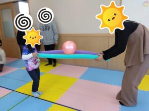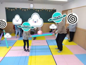 今日は、始めに少しお話しをしていただく時間を過ごした後、せっかくだから、普段子どもたちが楽しんでいる集団活動を体験していただこうということで、親子レクのような形で体を動かしていただきました😁