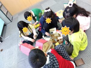 はじめはひとりひとりで遊んでいましたが、徐々に人数が増え