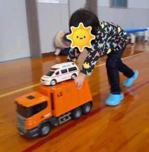 大きいトラックや乗れる車などたくさんあり、大はしゃぎ🕺🪩🪇