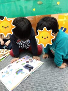 運動、集団活動の後は、絵本を読んでまったり過ごしました😎