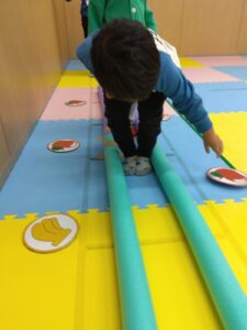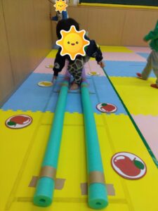 運動あそびでは、「ヘビ道路」をアレンジした活動になっていました‼️