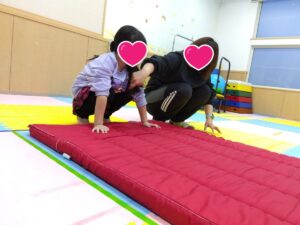 職員のアドバイスをよーく聞いて挑戦するお友だち🎶