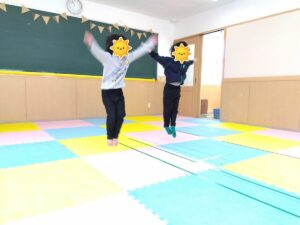 ジャンプだけ、腕だけと別々に行うとなんなくできますが、一緒にやってみると「あれ!難しい!!」という声がちらほら🫨