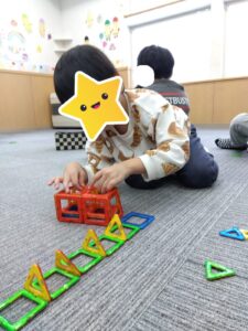 マグネットブロックで高速道路の料金所を作っていたお友だち!