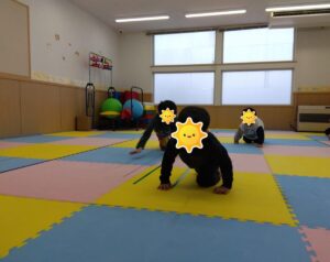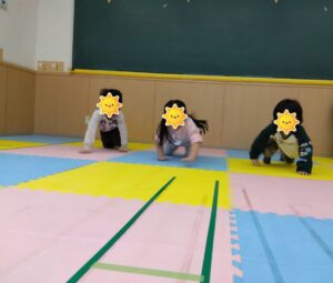 今回は①筋肉の発達(特に体幹の強化)を目的とした集団活動ひっぱりハイハイ🫧