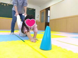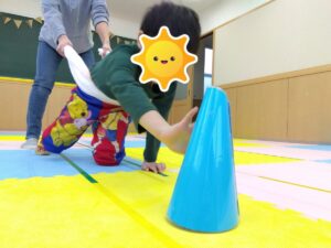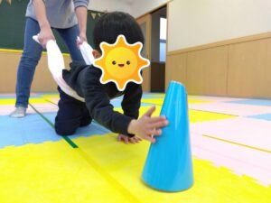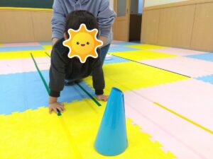 腕をう~~~~~んと伸ばしてコーンにタッチ⭐⭐⭐