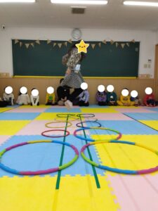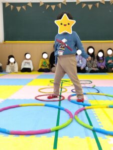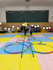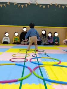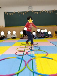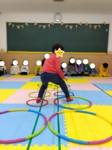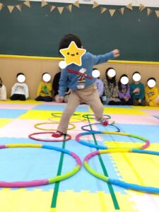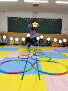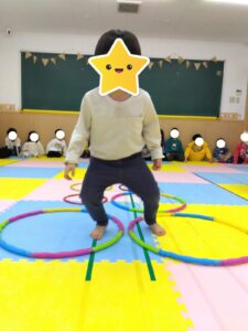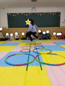 勢いよくジャンプ!!!後ろ向きにジャンプって少し怖い気持ちもありますが、みんな勇気を振り絞って挑戦しています🔥