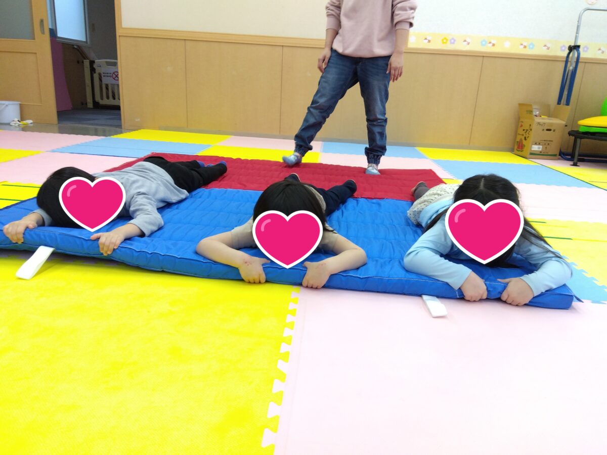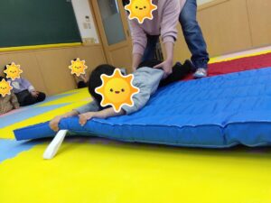 ですが、昨日はマットに掴まった子どもたちを大根に見立てて体を引っ張って抜いていき、