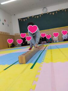 平均台をしっかり握って反対側へ両足ジャンプで移動します➿
