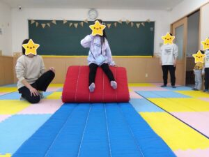 運動遊びは、とび箱ですべり台が大人気でした😍😍