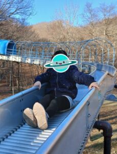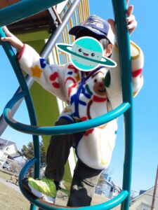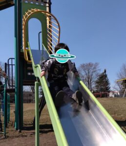 ジャングルジムを上った後は、滑り台を爽快に滑り降りていました🛝✨