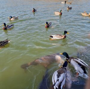 まず初めに鴨と鯉を間近で観察👀🦆