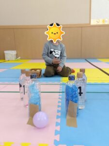 昨日の集団活動は「ボール転がしゲーム」を行いました✨