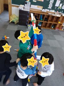また、ブロック同士がつながる事を子どもたちはよく知っているので、