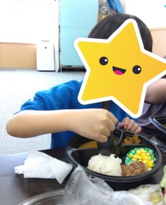 カレーライスを頬張る子どもたち😋🥄