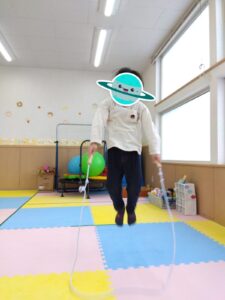 なわとびの長さを調節して、