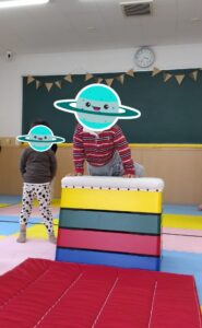 昨日の集団活動では、「クマのお腹ボール通し」を行いました🌟
